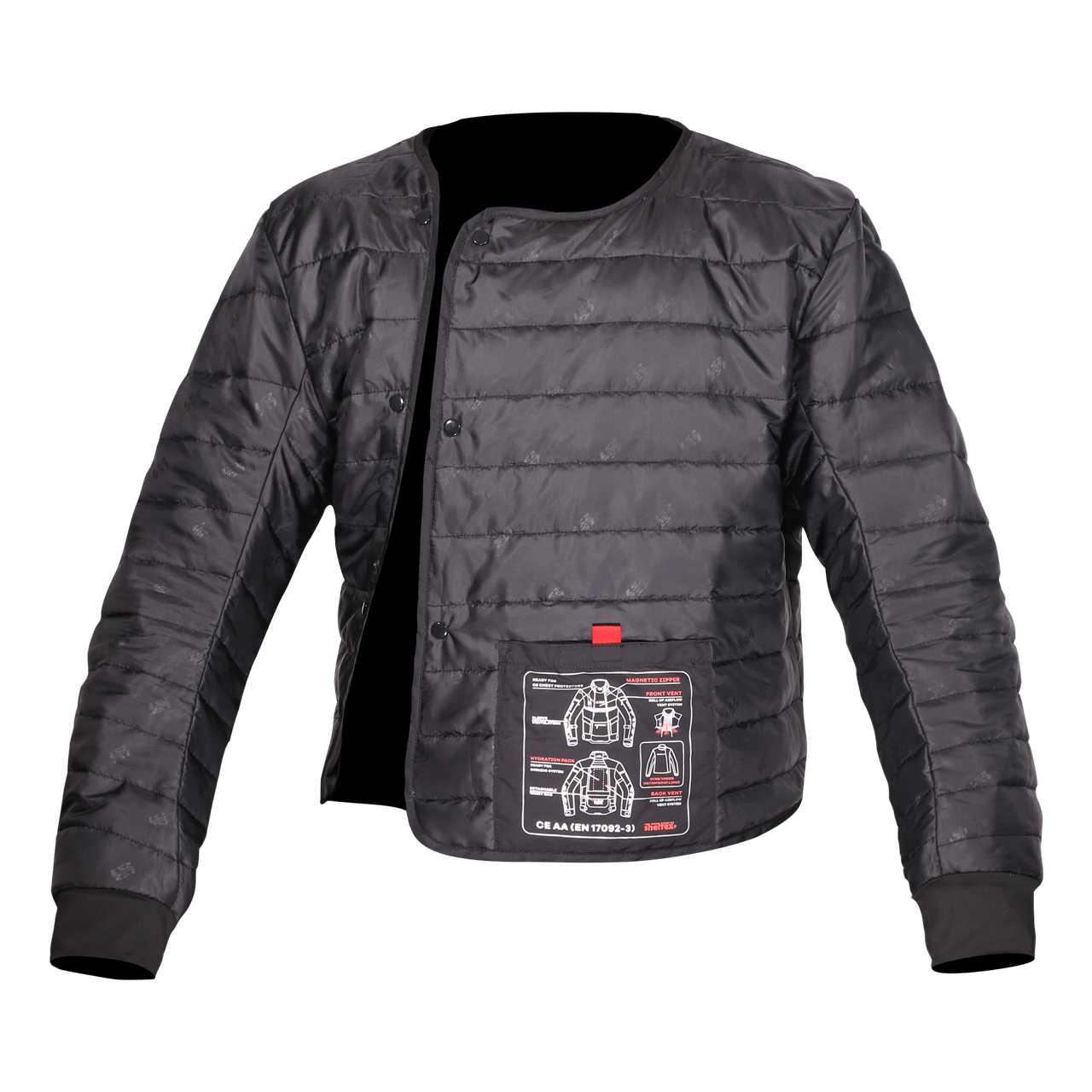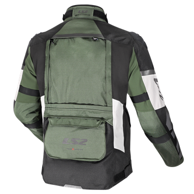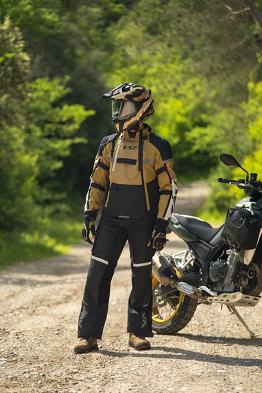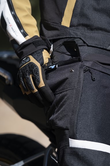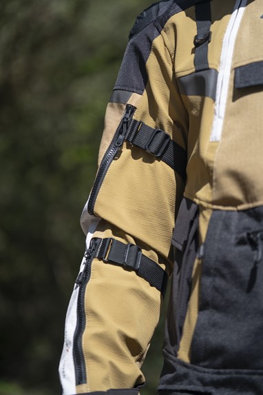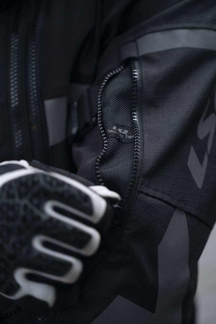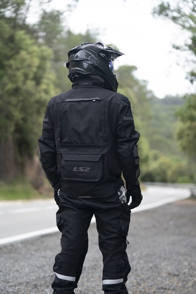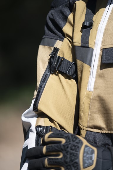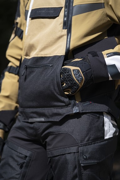 Em termos de funcionalidade, o blusão inclui um sistema interno de drenagem de água, fecho frontal magnético IDEAL® de fácil utilização com luvas, cinco bolsos frontais, bolsa de cintura impermeável destacável e vários pontos de ajuste. Está ainda preparado para integrar um sistema de hidratação nas costas, pensado para viagens longas.