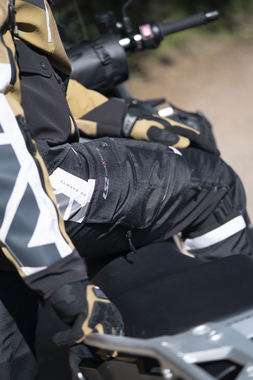 As calças X‑Master seguem a mesma filosofia do blusão, com certificação AA e construção resistente. Incluem proteções de joelho nível 2 com três posições ajustáveis e proteções de anca nível 1.