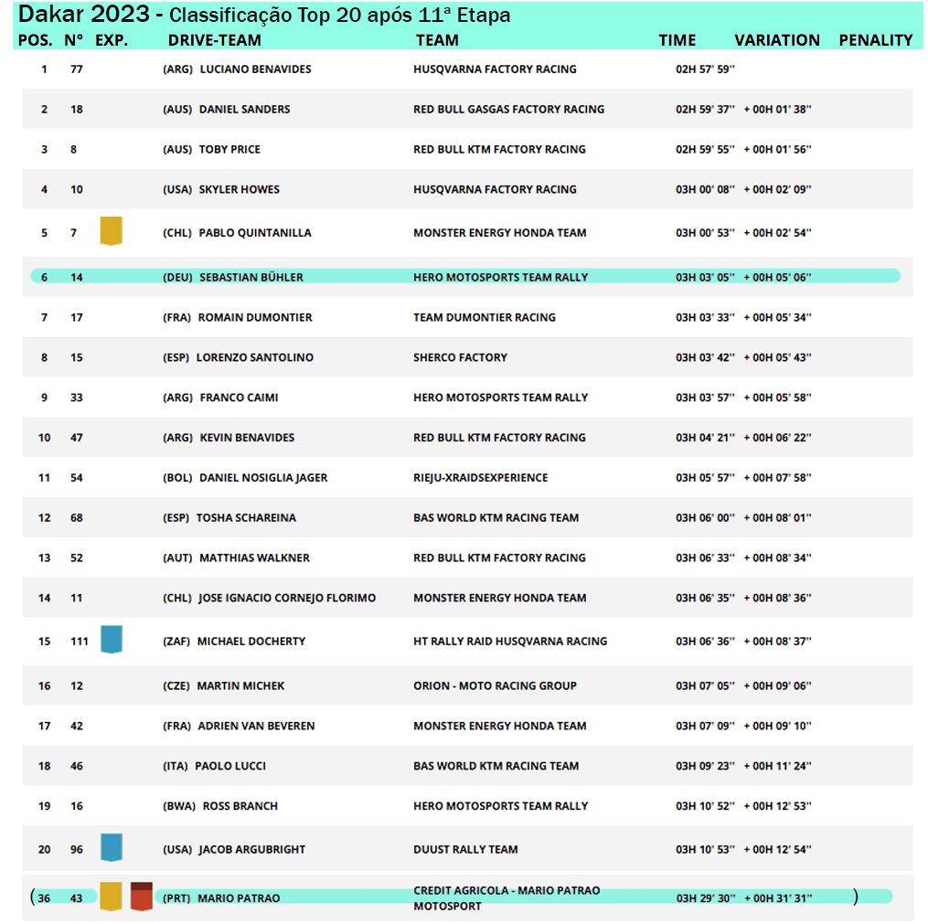 pilotos ontem, Buhler mantém agora a 25ª posição da geral, a 4 horas e 08