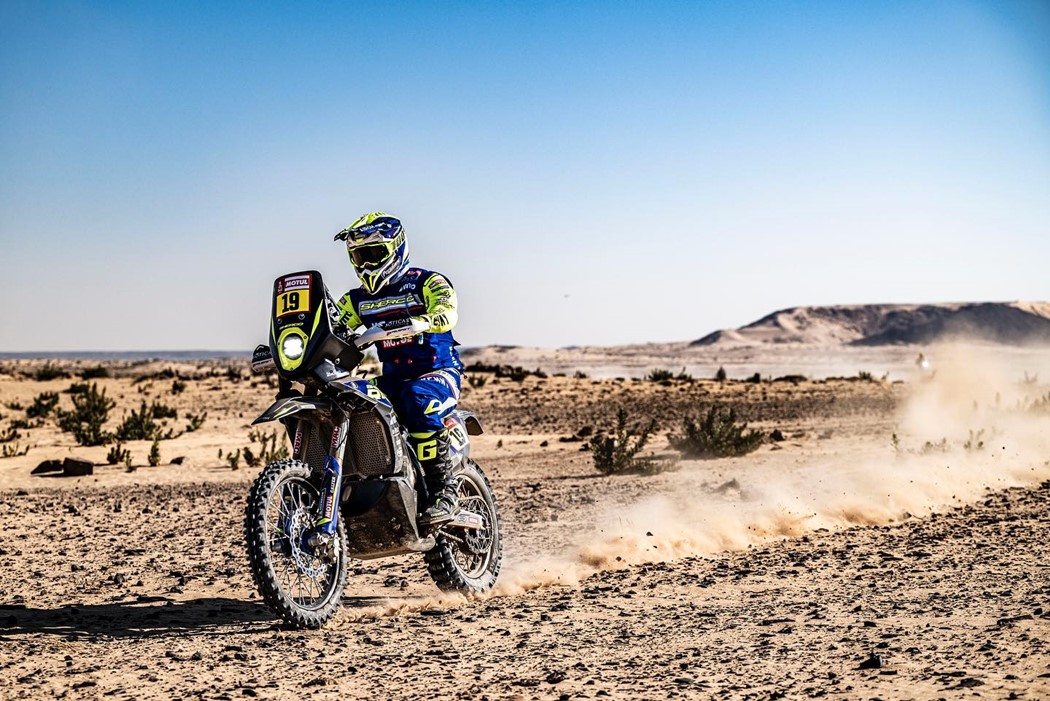 “8º na etapa de hoje que foi um bocadinho mais curta, mas em contrapartida tivemos uma grande ligação acabando o dia com muitas horas em cima da moto.