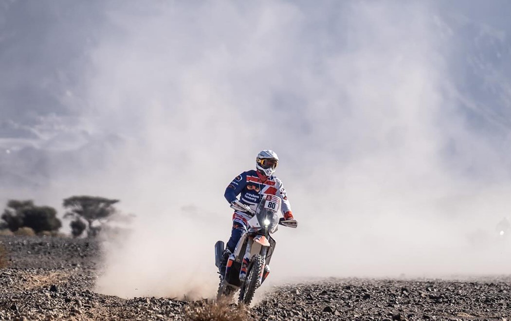 “Bati numa pedra grande, e a junção do tubo de gasolina (...) cedeu. Depois do quilómetro 150 tive de fazer uma gestão brutal de combustível, e foi uma sorte chegar reabastecimento, pois a mota já ia falhar com falta de gasolina. Foi um milagre não ter ficado a pé!”