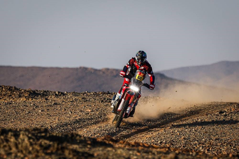 O espanhol Tosha Schareina (68), a correr pela Monster Energy Honda HRC, continua em 2.º lugar, mas agora um pouco mais longe, estando a 15 minutos e 33 segundos do líder que, amanhã, terá de abrir a etapa. Tosha, se quiser lutar pelo lugar mais alto do pódio, tem duas hipóteses: ou faz marcação cerrada a Sanders à espera de um erro deste ou tem de o ultrapassar e por uma margem significativa.