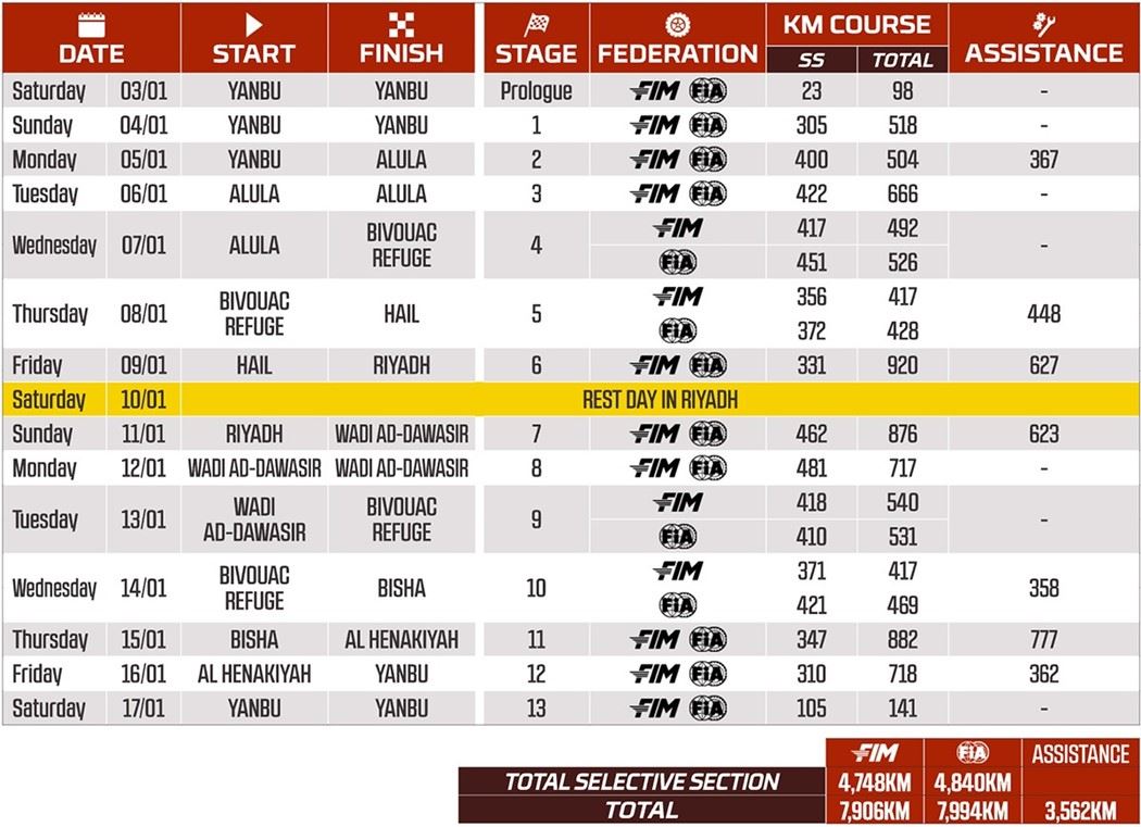 Com supervisão do Ministério do Desporto Saudita e organizado pela Amaury Sport Organisation (ASO) a edição deste ano, que será quadragésima oitava, promete ser particularmente desafiante e exigente para todos. Vai ter no seu traçado vários trilhos nunca percorridos nas seis edições anteriores, o que aumenta a espetacularidade e o grau de incerteza.