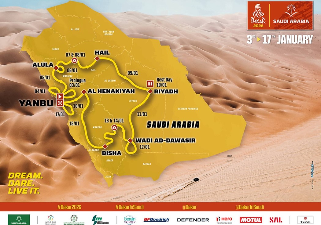 Com uma distância total de 7.999 quilómetros, incluindo 4.845 quilómetros de etapas especiais cronometradas, o percurso de 2026 quase iguala a distância competitiva mais longa da era saudita do rali. O novo percurso oferece rotas moldadas pelo desafio, pela descoberta e pelas paisagens surpreendentes que vão marcar esta edição, seja à beira-mar ou no interior do deserto mais recôndito.