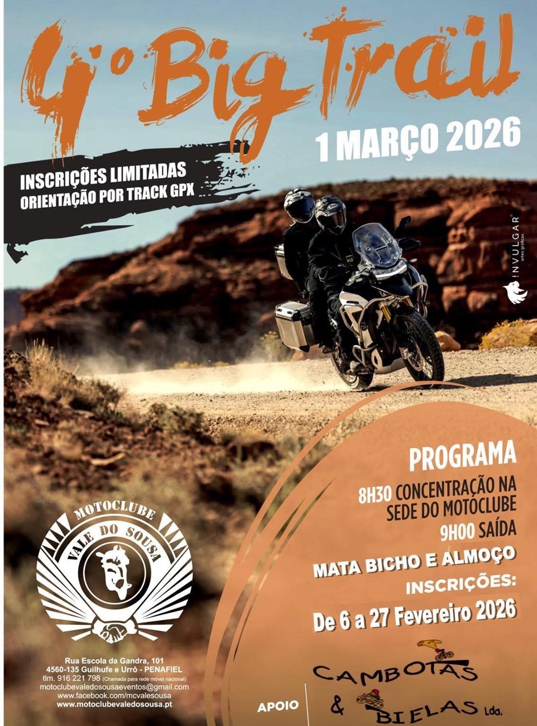 As inscrições são limitadas e encerram amanhã, dia 27, pelo que se quer participar e ainda não se inscreveu, é melhor ser rápido a contatar aquele Motoclube ou a seguir as instruções do cartaz para efetivar a sua inscrição.