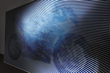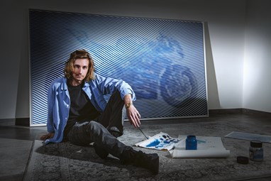 Feita sobre tela na escala de 1:1, a obra destaca-se por um sofisticado entrelaçamento de linhas azuis, uma cor evocativa que lembra a pintura original da Panigale V4 Tricolore Italia. As linhas fluidas e nunca cruzadas criam uma ilusão de ótica que inspira movimento e profundidade, projetando a perceção da velocidade para uma nova e envolvente dimensão artística.