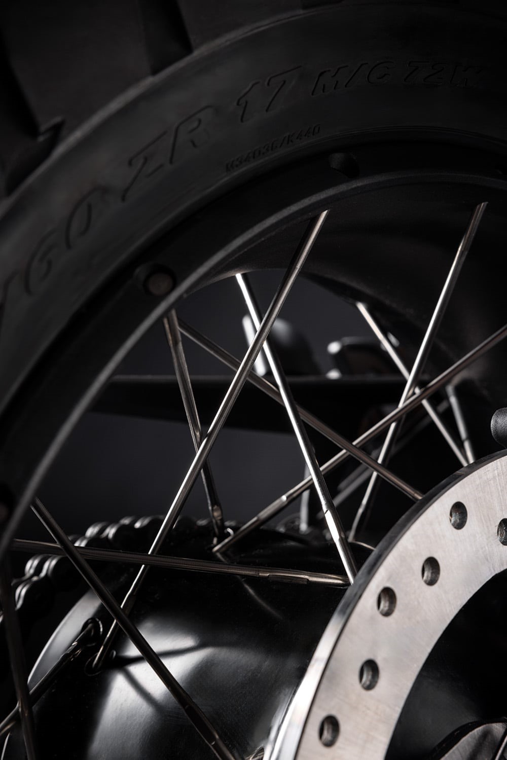 As jantes raiadas para pneus tubeless são emblemáticas disso, especialmente quando combinadas com uma resistente proteção de motor em tubo de aço, na qual também é possível instalar faróis auxiliares LED adicionais.