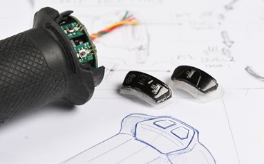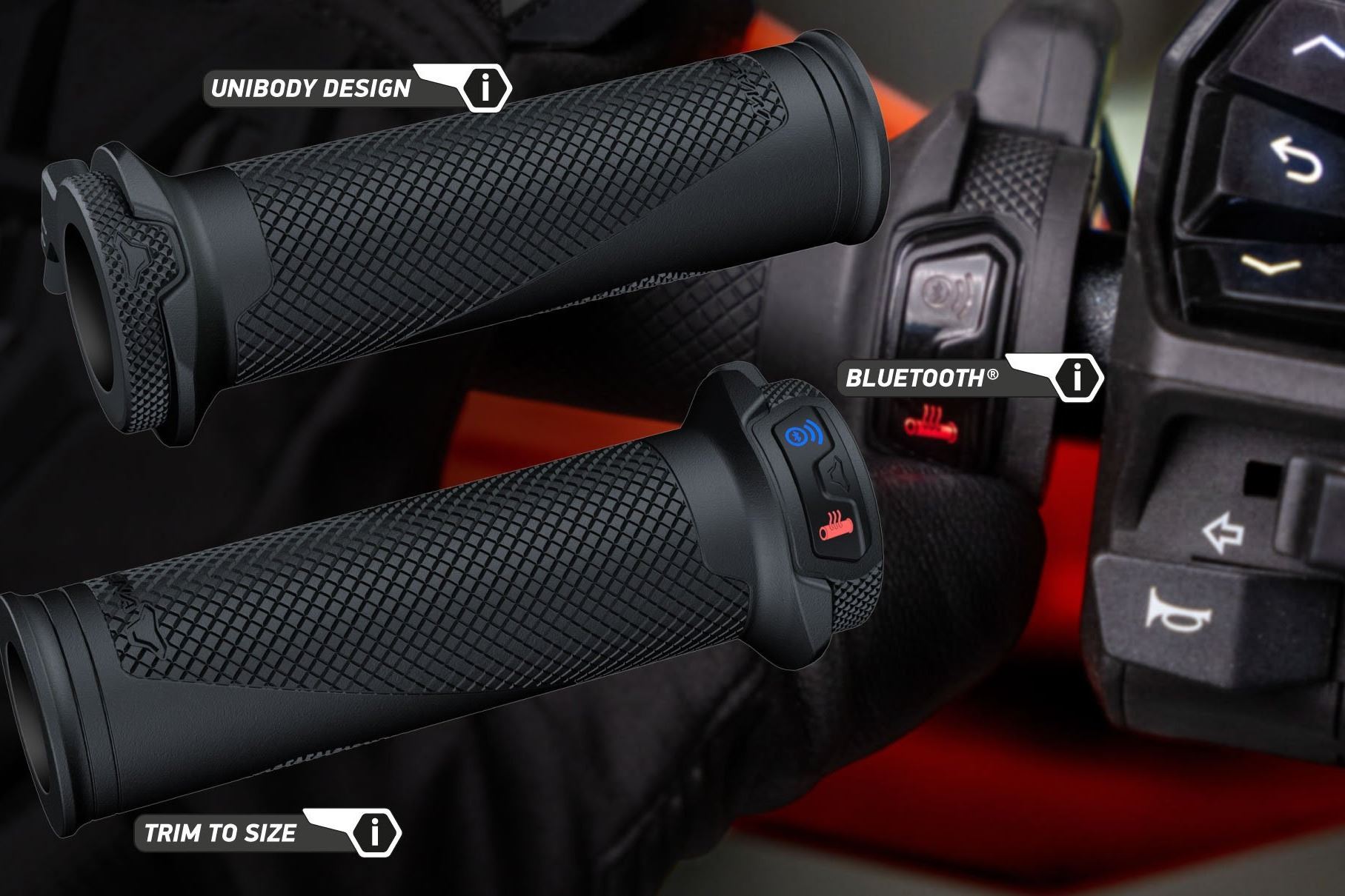 Os punhos são construídos com um corpo único (unibody) à prova de intempéries, feito de TPR (material semelhante a borracha), que é durável e capaz de absorver vibrações. Os quatro níveis de aquecimento são indicados por cores distintas.