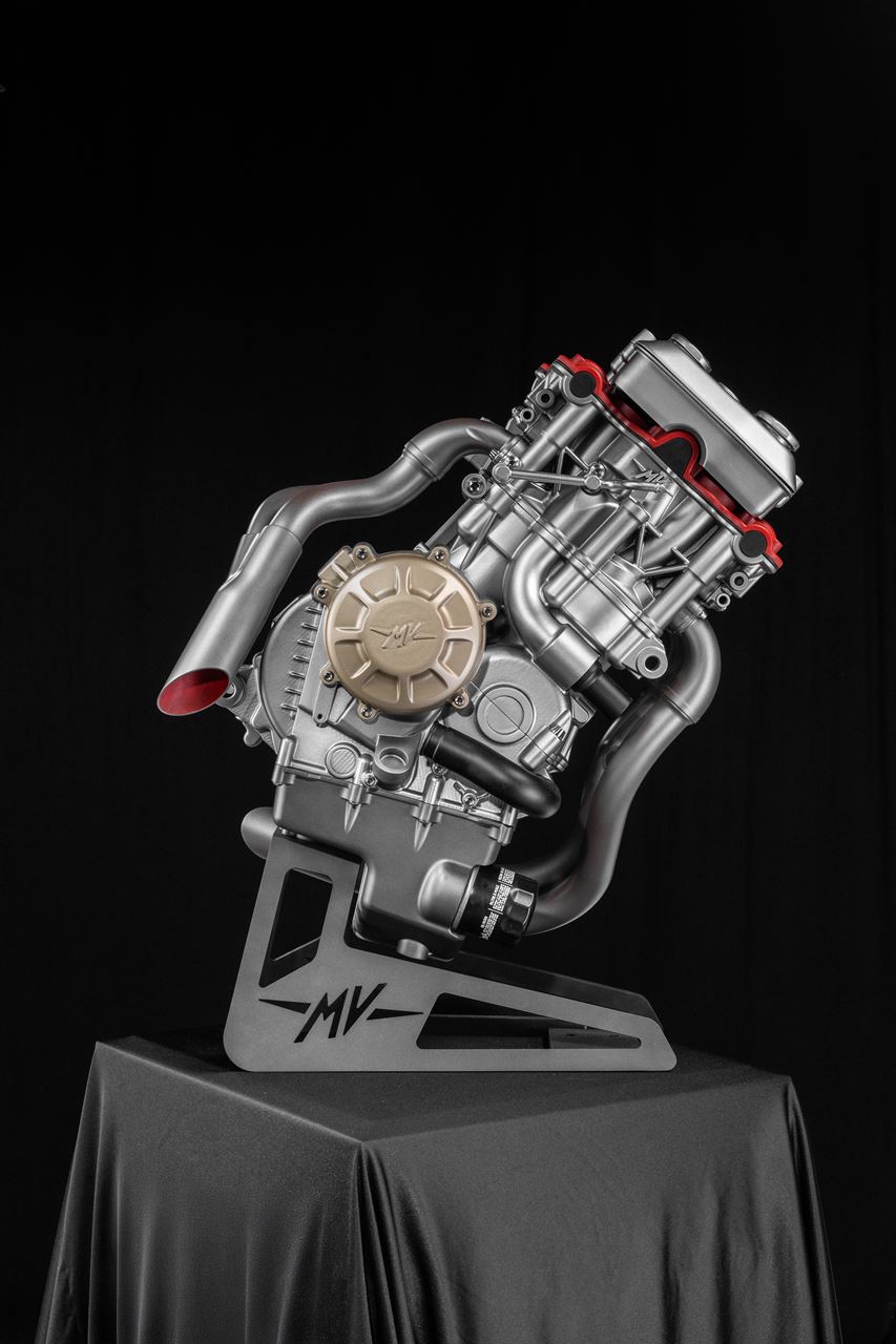 LM: Como sabe, a MV gosta de contrariar a convenção, por isso aqui temos um motor tricilíndrico e um bicilíndrico acoplados para formar uma configuração U5 mas, neste caso, com cabeças de cilindro de quatro válvulas! Neste momento estamos a considerar diferentes configurações, dependendo do espaço disponível, e podemos optar, por exemplo, por capacidades de 850 cm³, 1150 cm³ ou até 1200 cm³. Mas, falando de válvulas, ainda estamos a trabalhar no sistema de admissão, porque, como referi antes, o componente mais complexo do projecto é a cabeça do cilindro.