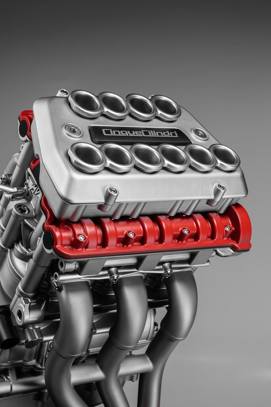 Mas além disso, decidimos tentar poupar peso, bem como simplificar o desenho, electrificando este motor tanto quanto possível, para também reduzir o atrito e aumentar significativamente o desempenho. Assim, o Cinque Cilindri é um motor de combustão interna convencional, mas, como acontece cada vez mais no mundo automóvel, várias funções auxiliares, como a bomba de água, a bomba de óleo e outros componentes vitais do conjunto, são accionadas electricamente em vez de mecanicamente, com motores eléctricos dedicados.