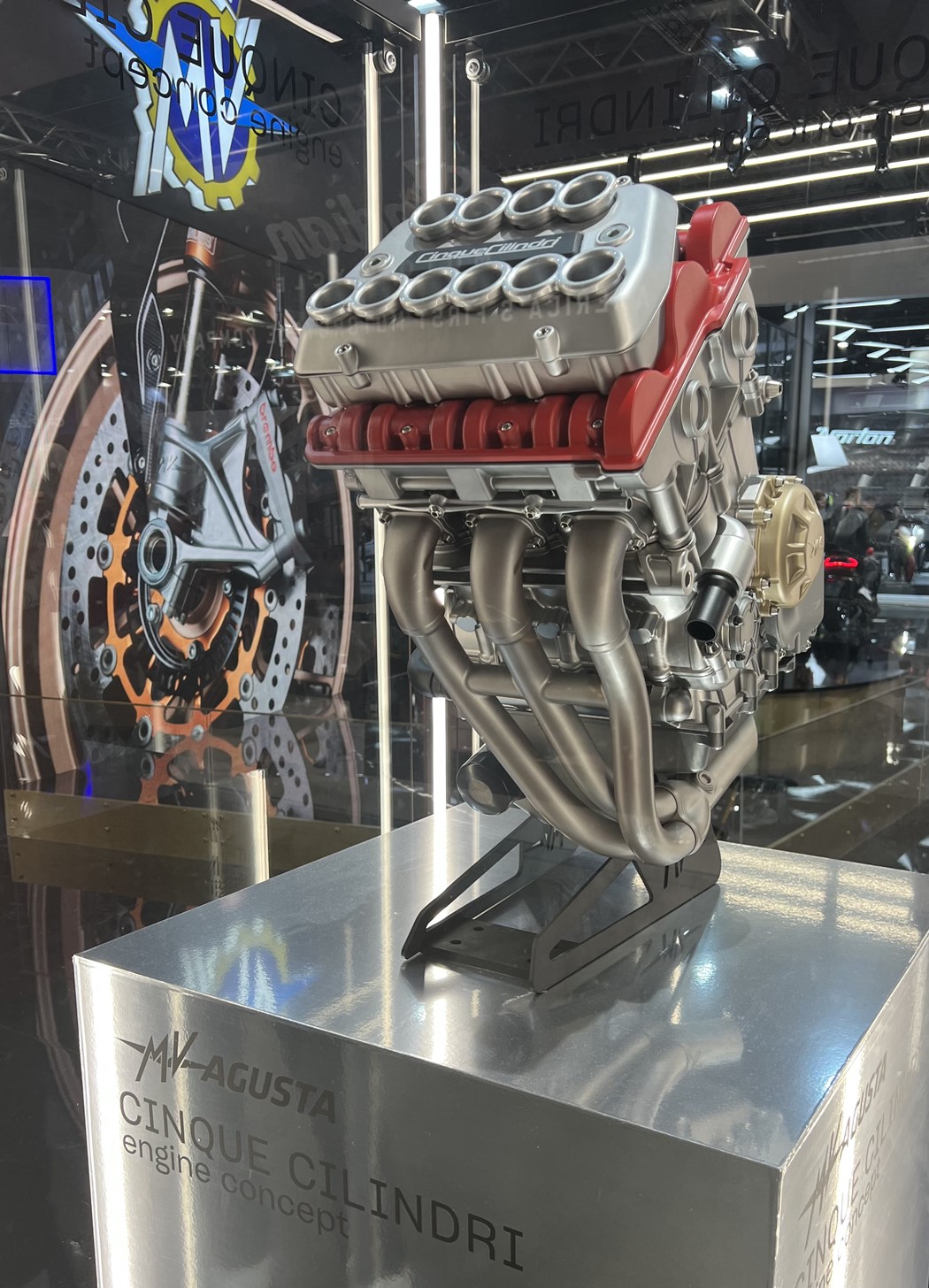 O protótipo do radical novo motor de cinco cilindros Cinque Cilindri da MV Agusta foi introduzido discretamente no stand da marca, na EICMA 2025, sem qualquer alarde, para não desviar a atenção do lançamento do novo modelo Brutale Serie Oro da empresa.