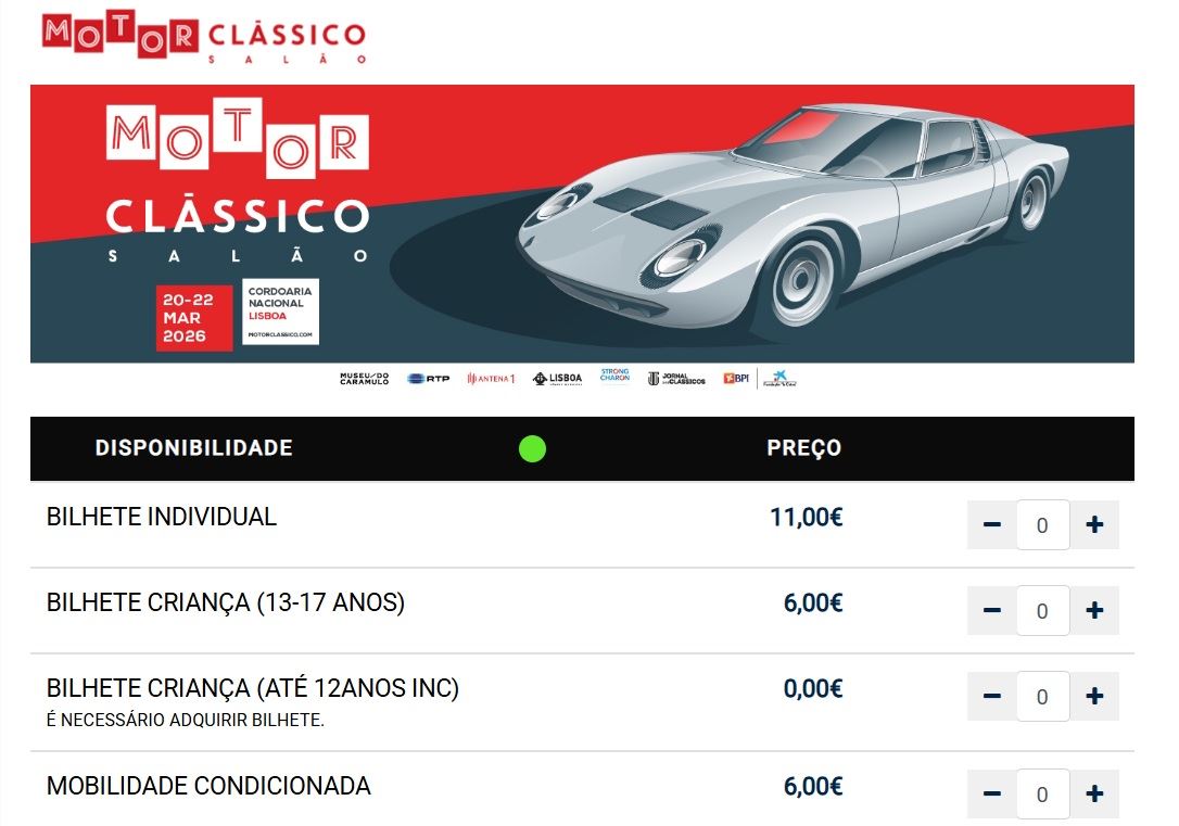 20/3/2026 a 22/3/2026 Salão Motorclássico regressa à Cordoaria Nacional, de 20 a 22 de março de 2026