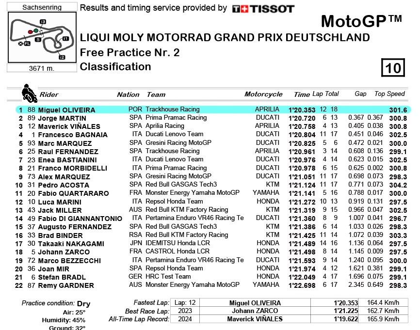 MotoGP, 2024, Alemanha - Oliveira no topo