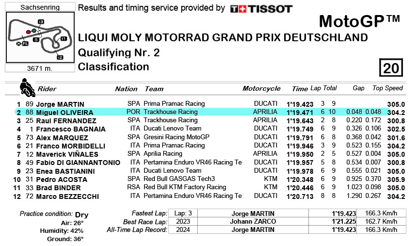 MotoGP, 2024, Alemanha - Martin na Pole, Oliveira 2º