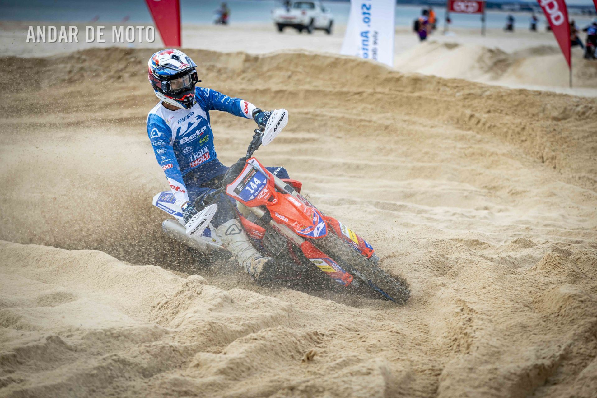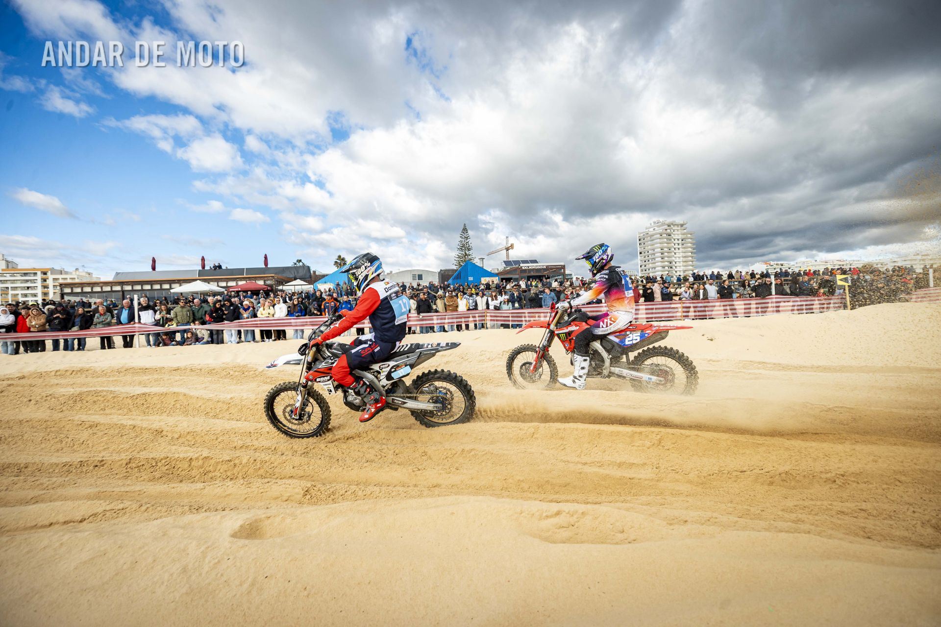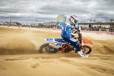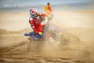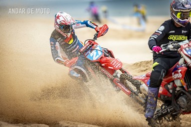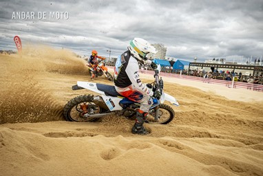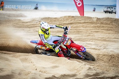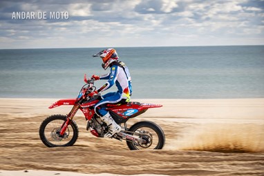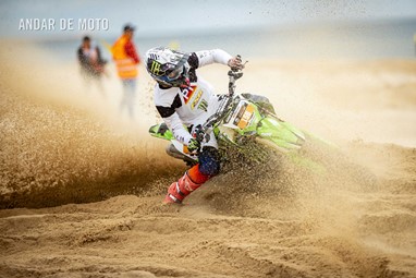 O Algarve voltou a acolher a terceira edição da Monte Gordo Sand Race, a quinta e penúltima ronda da FIM Sand Races World Championship. Com milhares de espectadores a assistir ao longo da praia, o primeiro dia da Monte Gordo Sand Race 2025 pautou-se por um domínio claro do inglês Todd Kellett, líder do Campeonato do Mundo e que aos comandos de uma Yamaha se impôs face aos franceses Cyril Genot, Milko Potisek e Jeremy Hauquier. Este quarteto completou 31 voltas num traçado renovado, mais uma que os quatro pilotos que se seguiram na classificação do primeiro dia da Monte Gordo Sand Race. Paulo Alberto e Luis Outeiro ambos em Yamaha encerraram o Top 10 sendo os primeiros entre os portugueses. Damien Prevoto, Amandine Verstappen e Evan Demeester foram os vencedores respetivamente entre os veteranos, senhoras e Juniores. Rui Alves destacou-se entre os iniciados, Duarte Marques venceu na YZ85 e Edgar Póvoa entre as YZ65. No segundo dia de corridas a Praia de Monte Gordo, no Concelho de Vila Real de Santo António, no Algarve, recebeu milhares de visitantes que quiseram viver de perto as emoções da quinta e penúltima ronda do FIM Sand Races World Championship. Os espectadores, desta que é a terceira edição da Monte Gordo Sand Race, tiveram o privilégio de assistir, no segundo dia, a uma competição com uma hora de duração, marcada por uma luta intensa pela vitória depois de o inglês Todd Kellett, dominador da corrida da véspera ,ter sido forçado a abandonar logo à nona volta. A partir daí os franceses Cyril Genot e Jeremy Hauquier e o norueguês Hakon Fredrikssen foram-se alternando no comando da prova. As últimas voltas foram emocionantes com Genot e Fredrikssen a rodarem quase lado a lado, com a vitória a pender para o francês. Ao pódio subiu também Milko Potisek com o Top 5 a incluir ainda Lars Berkel e Julien Lieber. Os nove primeiros classificados terminaram na mesma volta, grupo onde se incluía, no 9º lugar, Luís Outeiro, o melhor piloto luso. Damien Prevoto, vencedor entre os veteranos fechou o Top 10 e Paulo Alberto foi 11º. A Monte Gordo Sand Race foi uma organização conjunta da Câmara Municipal de Vila Real de Santo António e do Automóvel Club de Portugal, tendo-se disputado sob a égide da Federação de Motociclismo de Portugal (FMP) e da Federação Internacional de Motociclismo (FIM). Fotografia de Luis Duarte