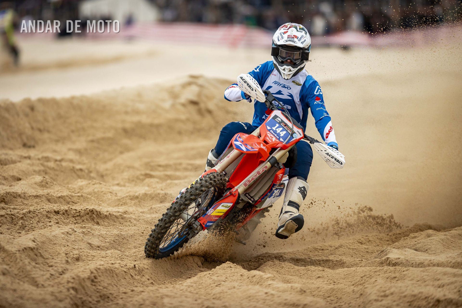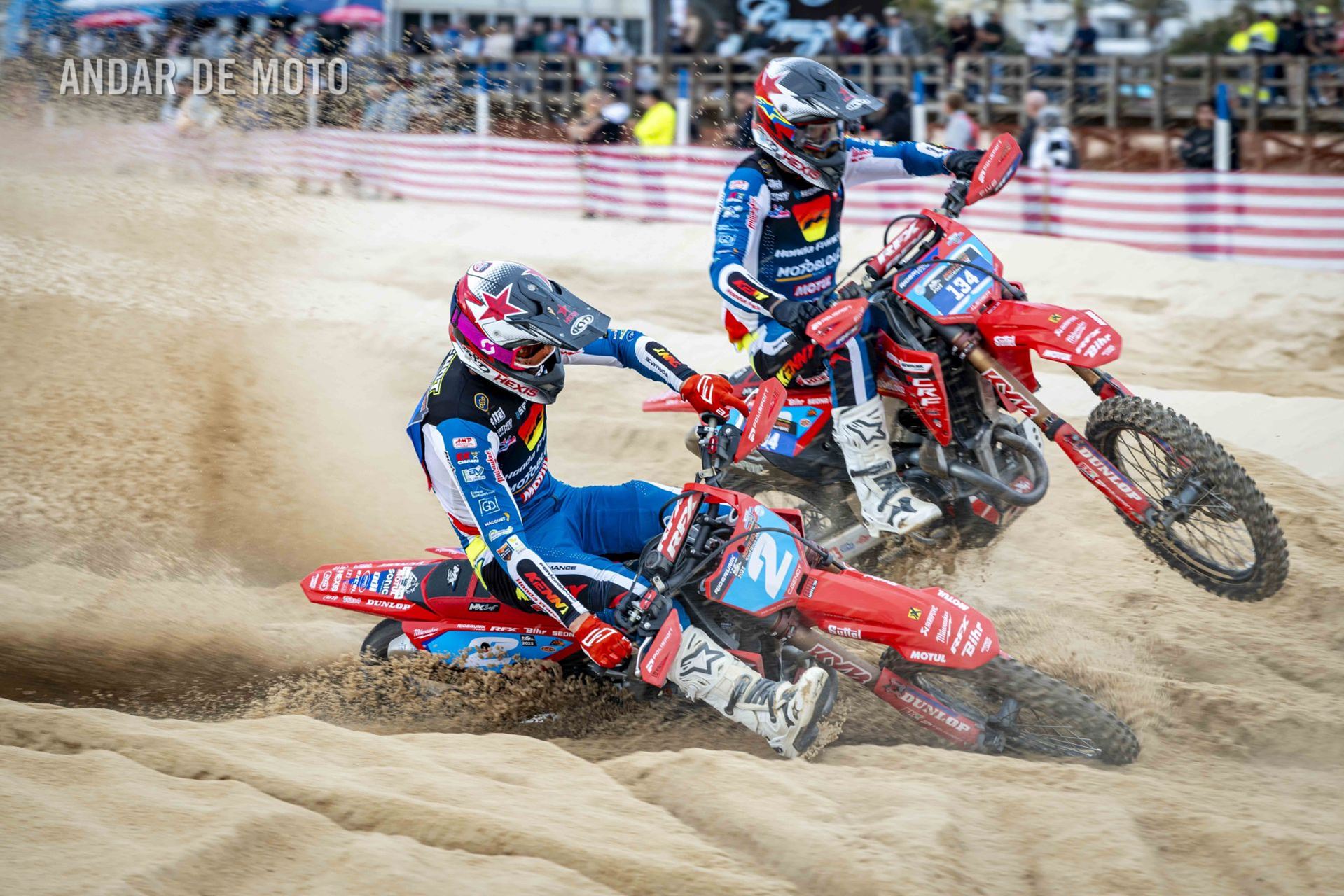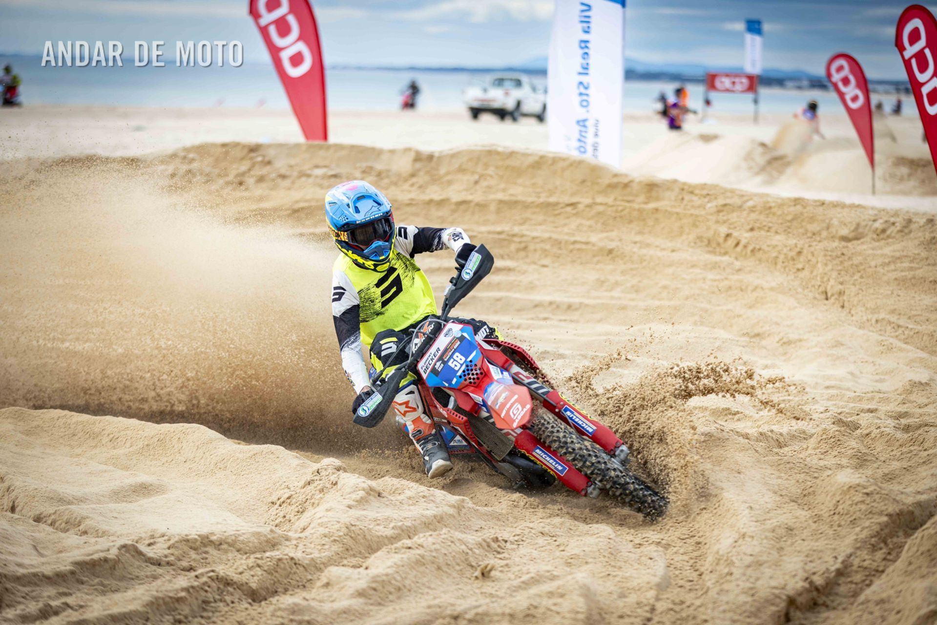 O Algarve voltou a acolher a terceira edição da Monte Gordo Sand Race, a quinta e penúltima ronda da FIM Sand Races World Championship. Com milhares de espectadores a assistir ao longo da praia, o primeiro dia da Monte Gordo Sand Race 2025 pautou-se por um domínio claro do inglês Todd Kellett, líder do Campeonato do Mundo e que aos comandos de uma Yamaha se impôs face aos franceses Cyril Genot, Milko Potisek e Jeremy Hauquier. Este quarteto completou 31 voltas num traçado renovado, mais uma que os quatro pilotos que se seguiram na classificação do primeiro dia da Monte Gordo Sand Race. Paulo Alberto e Luis Outeiro ambos em Yamaha encerraram o Top 10 sendo os primeiros entre os portugueses. Damien Prevoto, Amandine Verstappen e Evan Demeester foram os vencedores respetivamente entre os veteranos, senhoras e Juniores. Rui Alves destacou-se entre os iniciados, Duarte Marques venceu na YZ85 e Edgar Póvoa entre as YZ65. No segundo dia de corridas a Praia de Monte Gordo, no Concelho de Vila Real de Santo António, no Algarve, recebeu milhares de visitantes que quiseram viver de perto as emoções da quinta e penúltima ronda do FIM Sand Races World Championship. Os espectadores, desta que é a terceira edição da Monte Gordo Sand Race, tiveram o privilégio de assistir, no segundo dia, a uma competição com uma hora de duração, marcada por uma luta intensa pela vitória depois de o inglês Todd Kellett, dominador da corrida da véspera ,ter sido forçado a abandonar logo à nona volta. A partir daí os franceses Cyril Genot e Jeremy Hauquier e o norueguês Hakon Fredrikssen foram-se alternando no comando da prova. As últimas voltas foram emocionantes com Genot e Fredrikssen a rodarem quase lado a lado, com a vitória a pender para o francês. Ao pódio subiu também Milko Potisek com o Top 5 a incluir ainda Lars Berkel e Julien Lieber. Os nove primeiros classificados terminaram na mesma volta, grupo onde se incluía, no 9º lugar, Luís Outeiro, o melhor piloto luso. Damien Prevoto, vencedor entre os veteranos fechou o Top 10 e Paulo Alberto foi 11º. A Monte Gordo Sand Race foi uma organização conjunta da Câmara Municipal de Vila Real de Santo António e do Automóvel Club de Portugal, tendo-se disputado sob a égide da Federação de Motociclismo de Portugal (FMP) e da Federação Internacional de Motociclismo (FIM). Fotografia de Luis Duarte