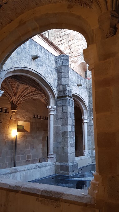 Na Praça do Município é possível ver o que resta do Palácio do Grão-Prior do Priorado do Crato: um janelão e a imponente varanda sustentada por arcos de volta perfeita.