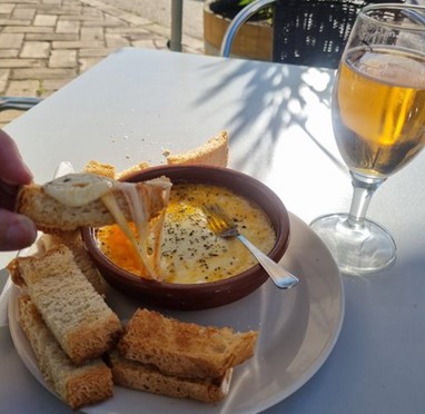 Fui cedo para o meu destino, em Adahuesca, não muito longe de Alquezar. Sabia que havia petiscos no hostel e boa cerveja, por isso fui para o aconchego comer e beber e pôr gelo no meu pulso, que já não queria caber na luva.