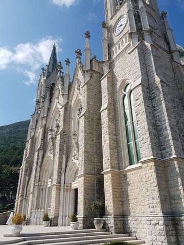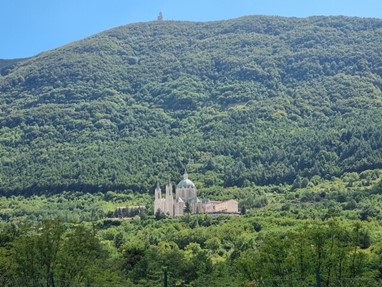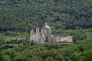 Então vi a Basilica Santuario di Maria Santíssima Addolorata ou Santuario dell’Addolorata di Castelpetroso no meio dos montes. Eu já tinha passado ali uns anos antes.