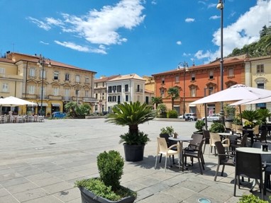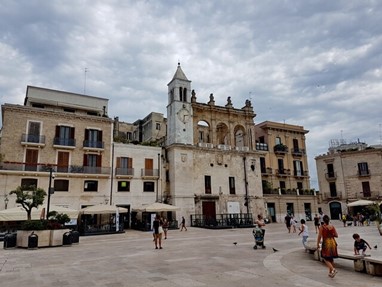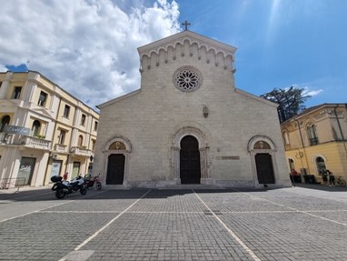 Espreitei só a Piaza S. Restitura, para tomar um café e porque tinha visto a traseira da Chiesa Collegiata di Santa Restitura, a padroeira da cidade, que parecia quase um castelo. Na realidade muito semelhante à Abbazia San Domenico lá atrás, mas é uma construção muito mais recente, do século XX.