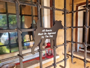 O alojamento era uma casinha muito simpática, dentro de um grande jardim, aparentemente cheia de gatos e cães, ou, pelo menos, de gente simpatizante dos bichinhos, a considerar pelas diversas placas engraçadas sobre peludos e patudos.