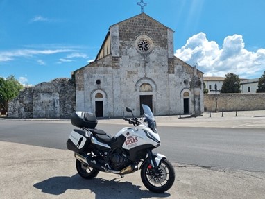 Naquele momento eu não queria confusões, queria apenas rolar pelo país abaixo sem muitas manobras motociclísticas, apreciando apenas o que fosse aparecendo à medida que eu ia passando. Assim passei em Sora, ou Sora passou por mim, com a sua Abbazia San Domenico Abate, do século XI, tão bonita, na beira da estrada.