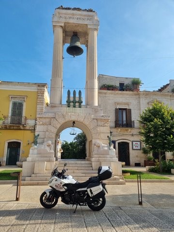 Dei uma volta por Sannicandro di Bari antes de me fazer à estrada, apenas porque não havia trânsito e por isso não tinha de usar muito a embraiagem nem as mudanças. O sítio é simpático, muito perto de Bari, com algumas coisas giras de ver. Eu estava numa de ver mas não de fotografar, tudo o que implicava parar a moto era coisa que não me apetecia de todo.