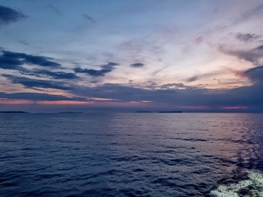 O entardecer num ferry é a coisa mais gira que tem para ver, e naquele era tão pacífico, porque não havia vento algum, nem frio, apenas nós e o mar. Lindo!!