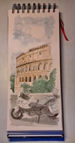 Ainda pensei em dar um retoque ao desenho do dia anterior, mas ficou mesmo assim, embora as rodas pareçam meio tortas, estão direitinhas, por isso fica como está. Memória de uma passagem por Roma!