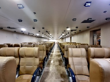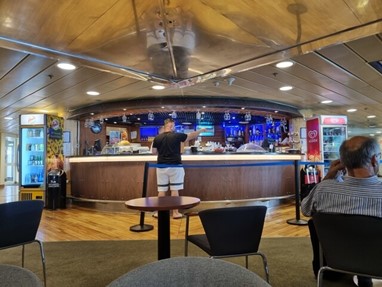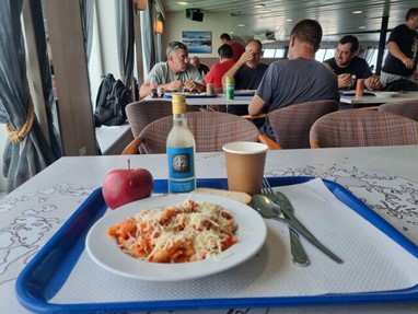 Foi quando fui comer que percebi que a grande parte dos viajantes eram camionistas. Sim que eu reservei viagem com almoço, já que há pouco o que fazer num ferry, ao menos não falte o que comer!