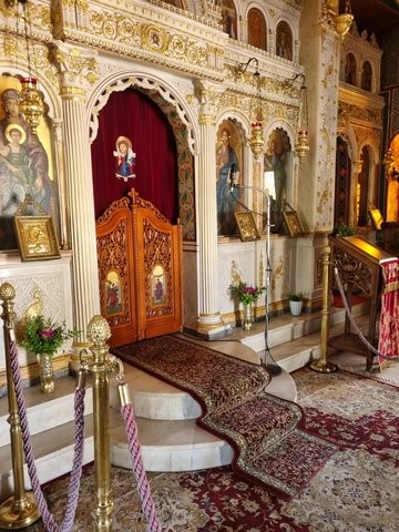 Conduzir calmamente era tudo o que eu queria, mas não pude deixar de parar ao avistar uma igreja ortodoxa. Elas são sempre tão bonitas! Estava em Molai e era a igreja de São Nectarios.