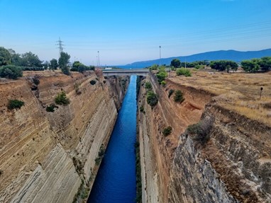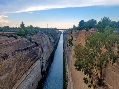 O Canal de Corinto liga o Golfo de Corinto ao Mar Egeu e, literalmente, rasga o Istmo de Corinto, que liga Peloponso à Grécia continental, para fazer esta ligação.