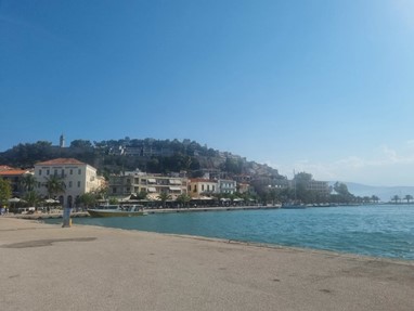 A montanha que eu atravessara no dia anterior aparecia ao longe, imponente e com nuvens por cima. Do outro lado devia estar a chuviscar, segundo as previsões. Sorte a minha que andava à frente do mau tempo, deixando-o a molhar os caminhos que já fizera.Finalmente cheguei a Astros, junto do Golfo Argólico, quando a terra começa a curvar para outro braço de terra onde fica Náuplia.