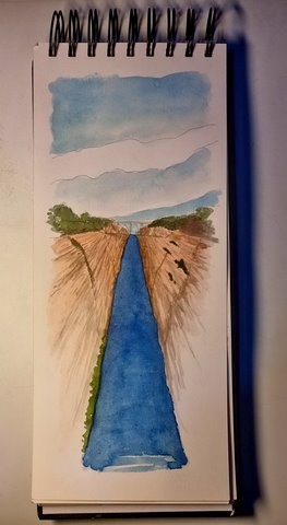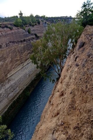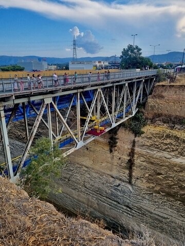 Parece uma ponte comum, quando a gente o atravessa concentrada na estrada, mas na realidade é uma obra impressionante, o Canal de Corinto.