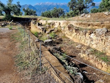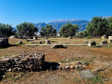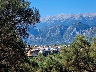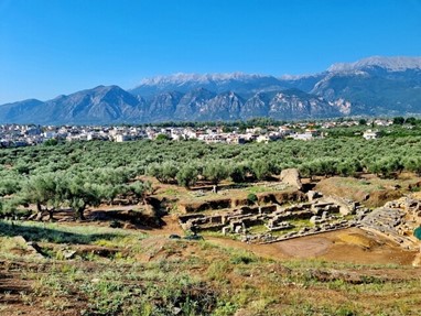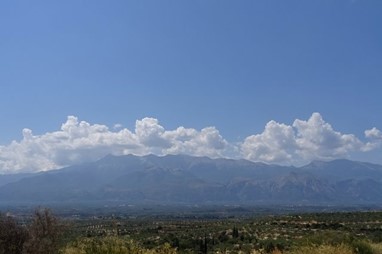A antiga Esparta com o monte Taígeto ao fundo, que se eleva até aos 2400 metros. Na realidade não é um monte e sim uma cordilheira das mais antigas registadas na Europa e que aparece referida na Odisseia de Homero. Fiquei fascinada por poder localizar e olhar para uma paisagem que vem desde a Grécia antiga até aos nossos dias. Eu sei que toda a terra e monte pela Europa tem história antiga, pois nada cresceu de repente, mas não pude evitar a sensação de pisar terra sagrada para a humanidade.