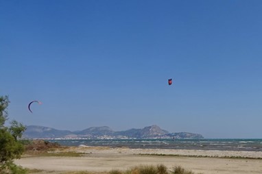 Havia parapentes no ar com aquela ventania! São malucos os gregos? Se eu me via grega a conduzir a moto no chão, eles não stressariam no ar?