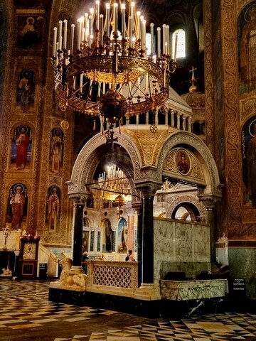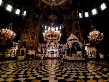 As catedrais sempre me fascinam, mas a de Sófia é daquelas que me atraem particularmente, porque é ortodoxa e o seu estilo neobizantino me fascina. Está ali, no centro da praça Sveti Aleksandar Nevski, o mesmo santo a quem a catedral é dedicada, como um grande ícone vivo da capital búlgara. No interior ela é grande, ampla e sombria, cheia de beleza antiga, como se tivesse muito mais que os seus cento e poucos anos. Eu sempre tenho cuidado ao entrar num templo de outra religião de que desconheço os costumes, não gosto de perturbar quem está, mas ali vieram ter comigo, receberam-me com simpatia e puseram-me à vontade para visitar, só deveria pagar um valor para poder fotografar. Acho justo, aquela beleza tem de ser cuidada!