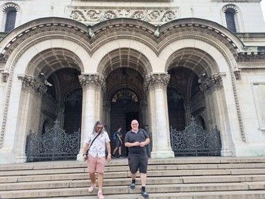 Lá estava a Catedral de Alexandre Nevsky (sim, ela tem um nome que não é Catedral de Sófia!) uma obra arquitetónica impressionante que fica no centro da praça. Foi construída no início do século XX e a sua arquitetura reflete a influência da tradição ortodoxa oriental combinada com elementos do Renascimento russo. Construída em mármore branco e granito tem aquele ar robusto, mas elegante, com um estilo moderno de influência neobizantina, visível nas cúpulas altas e os detalhes das fachadas.