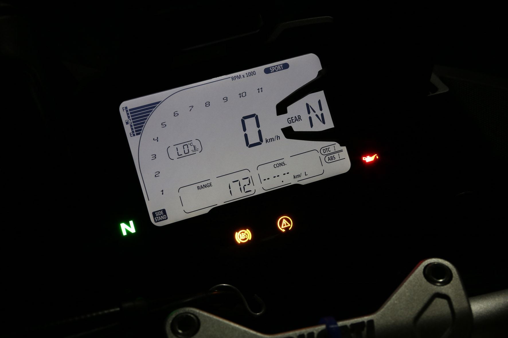 Ao assumir o cockpit da Ducati 950, o piloto se depara com um grande painel com tela LCD. Lá estão informações como a marcha engatada, velocímetro digital, autonomia do tanque de combustível entre outros dados. Porém a mais importante é qual entre os quatro modos de pilotagem foi selecionado, afinal isso faz toda a diferença.