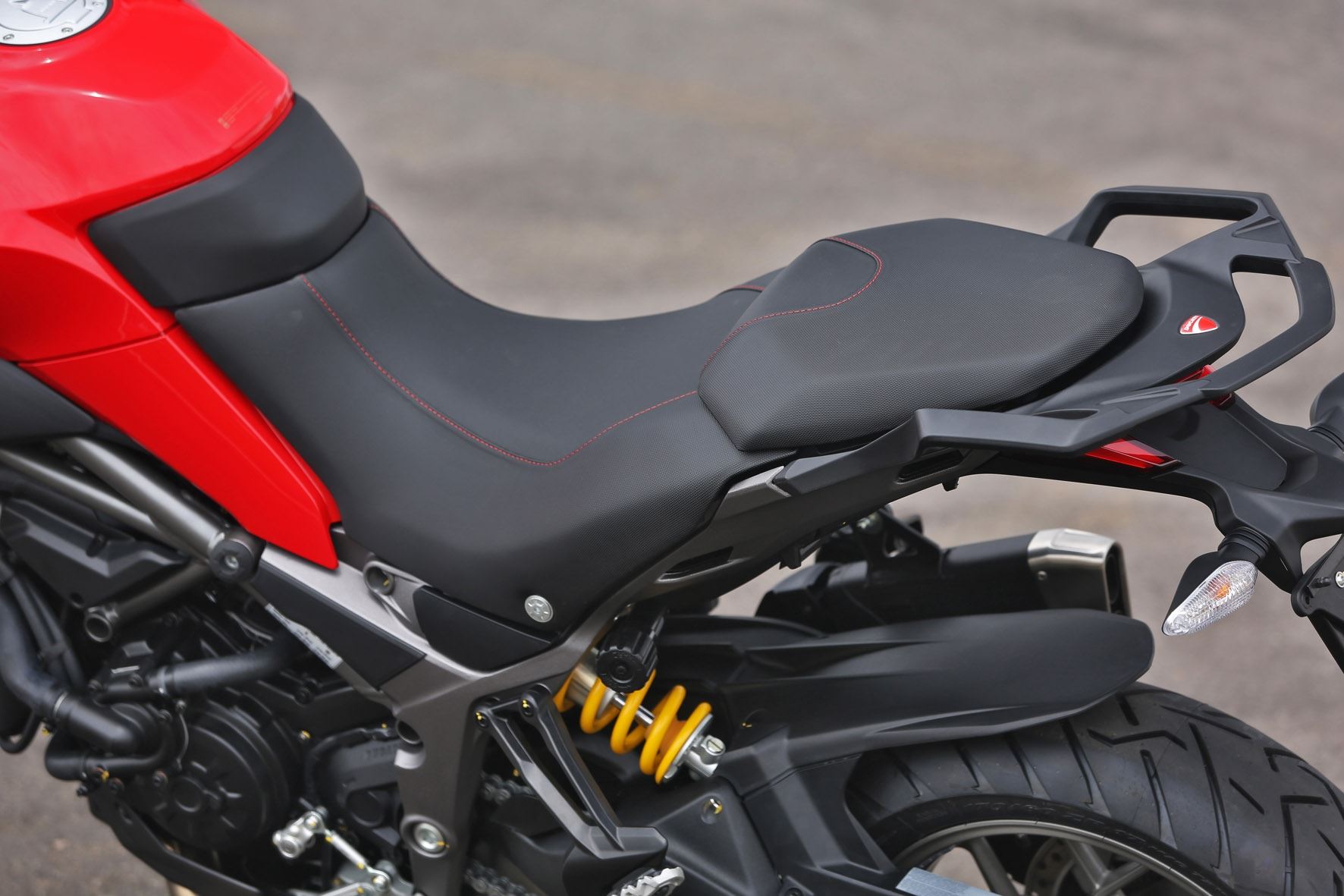 Para começar, a Multistrada 950 é mais alta que a 1200 e exige habilidade do piloto para não deixar cair seus 224 kg em manobras ou em baixas velocidades. Para contornar o problema a Ducati oferece bancos mais baixos como opcionais: na medida de 820 ou 860 mm, ao custo aproximado de R$ 1.800.