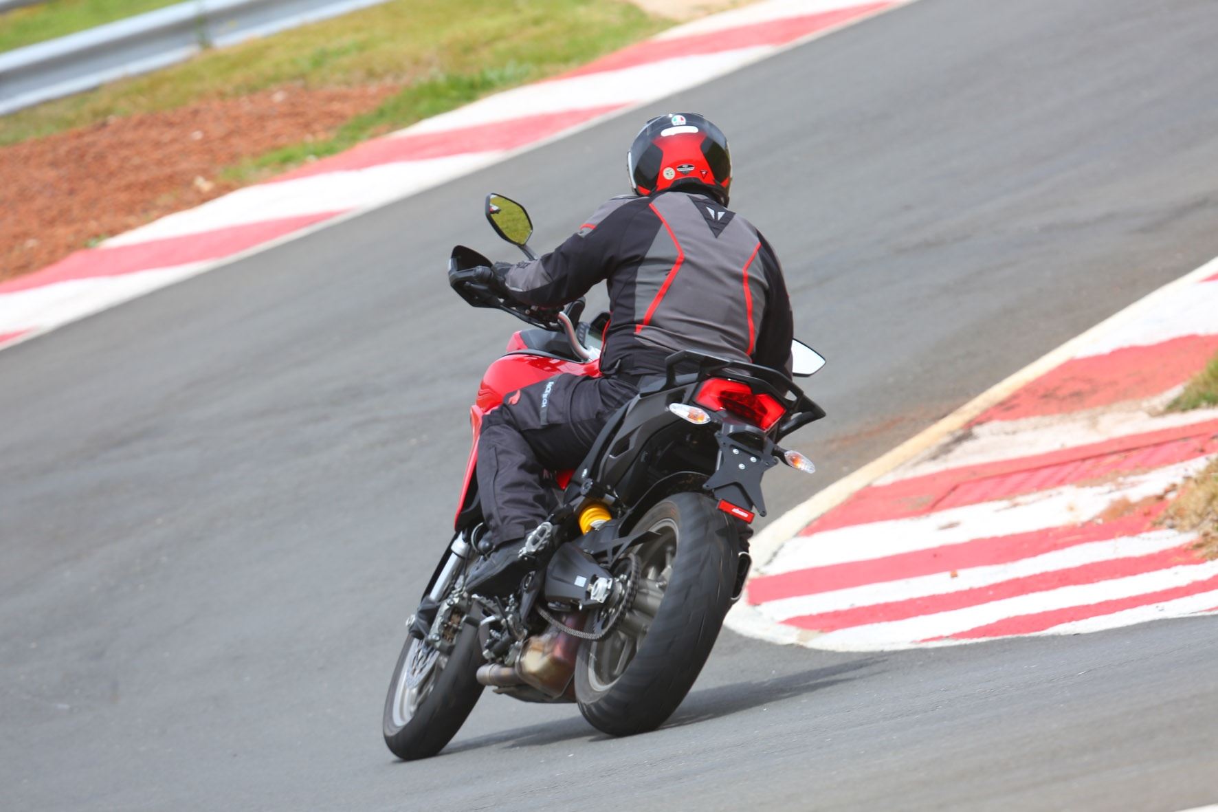 O conjunto de freio (disco duplo na frente e simples, atrás) consegue transmitir a confiança na mesma proporção que o motor instiga a acelerar cada vez mais. Além disso, nas entradas de curvas o piloto pode reduzir sem dó, pois a embreagem deslizante consegue evitar o “quique” da roda nas desacelerações mais violentas.