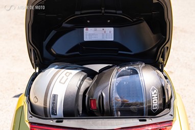 Os comandos da instrumentação estão bem colocados, com botões facilmente acessíveis. Ambas oferecem manetes ajustáveis, o ecrã pára-brisas é regulável em altura, electricamente, os espelhos oferecem uma excelente visibilidade e os encostos do passageiro, ambos fixados na “top case”, proporcionam um apoio e encaixe excelentes.