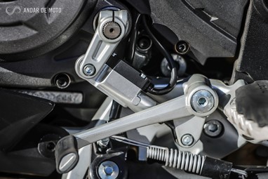Outro dos sistemas que reduzem a fadiga é o quickshifter. A caixa bem escalonada vê-se potenciada por este pequeno “gadget” que além de causar uma sonoridade impressionante nas passagens de caixa, evita o recurso à manete da embraiagem (que por sinal tem um accionamento bastante leve) e que causa menos solavancos na condução, facto que qualquer “pendura” agradece.