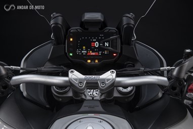 Outro ponto forte da Multistrada 950S é o interface humano. O painel de instrumentos, em TFT a cores, apresenta uma sinalética clara, muito legível, com diversos níveis de informação, diversas funções e opções de regulação, a que se acede por via de botões instalados no punho esquerdo, que têm a vantagem de ser retroiluminados.