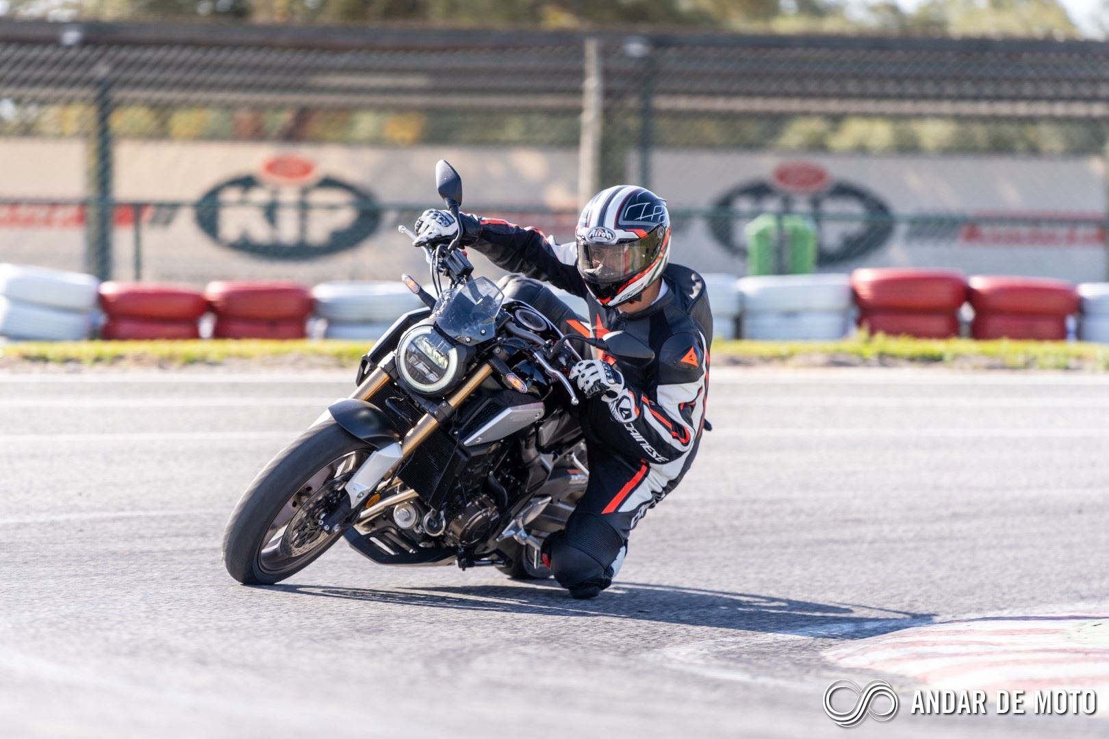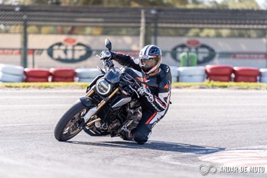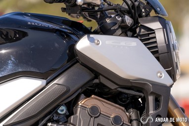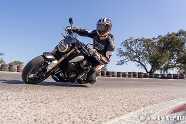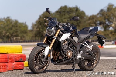 Num kartódromo sinuoso como é o KIP, a naked CB650R revela ser a opção mais indicada se nos queremos divertir sem grande esforço. É incrível como esta naked de média cilindrada e pensada tendo em conta ser uma proposta acessível em termos de preço consegue fazer o que faz, sem dramas, sem esforço, sem queixas. Apenas os pneus Metzeler Roadtec 01 que equipavam a nossa unidade de teste limitaram a condução em pista. Mas para ser sinceros, a CB650R também não foi pensada para esse tipo de ambientes, e numa condução urbana os Metzeler não são problema.As entradas de ar para a admissão estão colocadas nas tampas laterais, e ajudam a criar uma sonoridade específica, vincada e mais emocionante do que na CBR650R. Em contrapartida, a desportiva, que tem entradas de ar mais diretas, cria um pressão 3 vezes superior na caixa de ar, o que por sua vez ajuda a CBR a obter melhores performances ao nível das recuperações, e a partir dos 100 km/h não dá hipótese à CB650R.