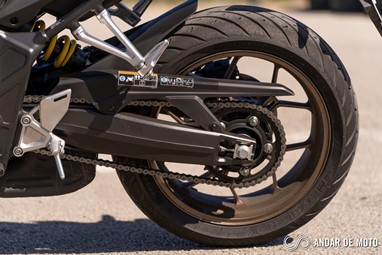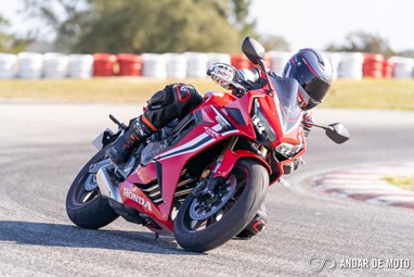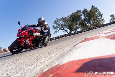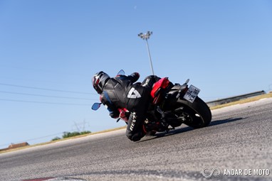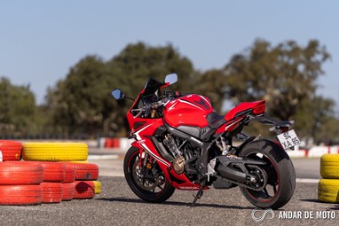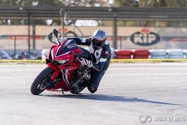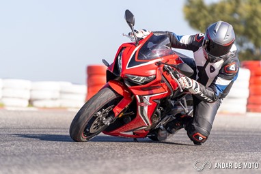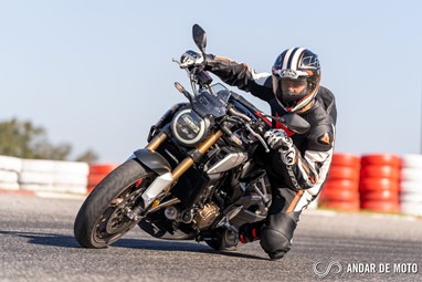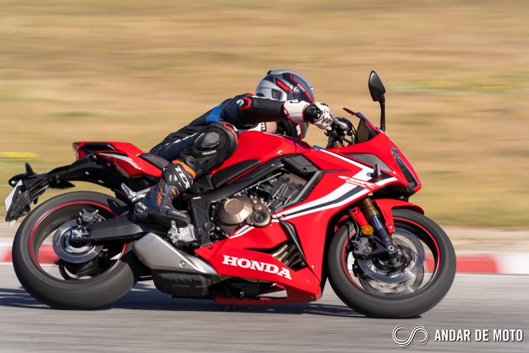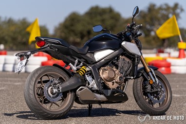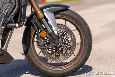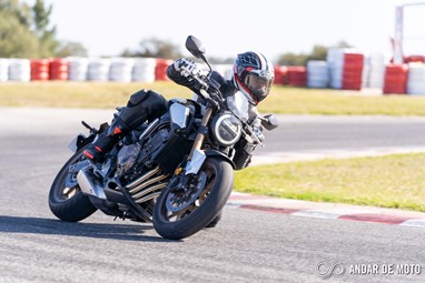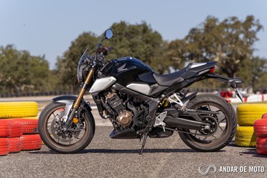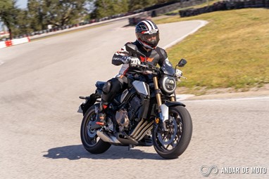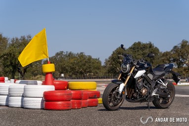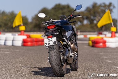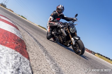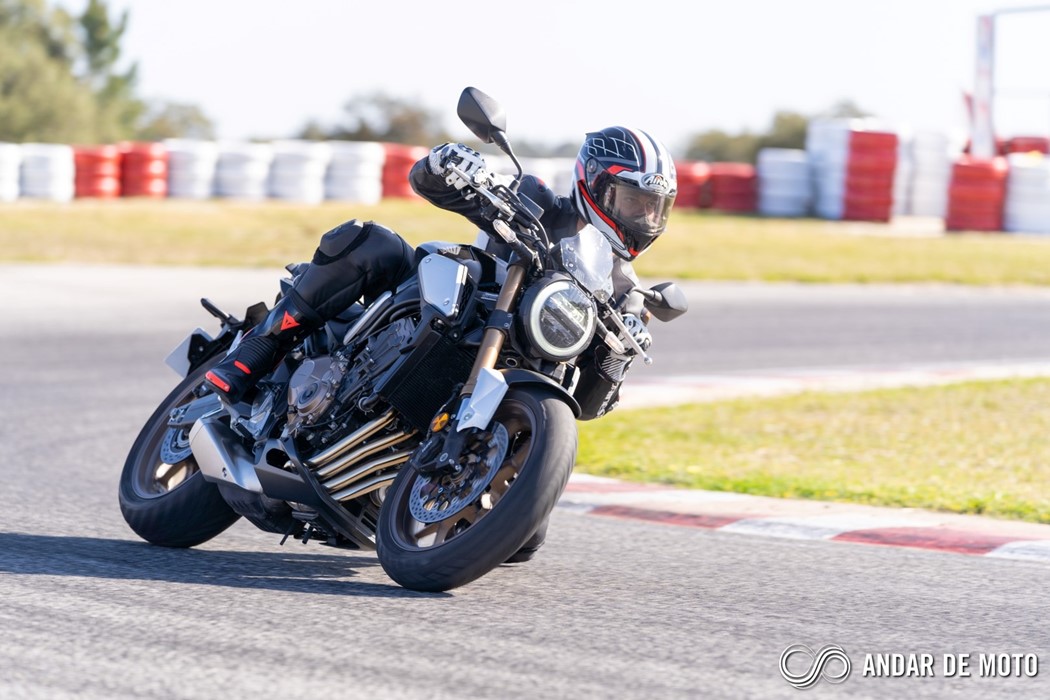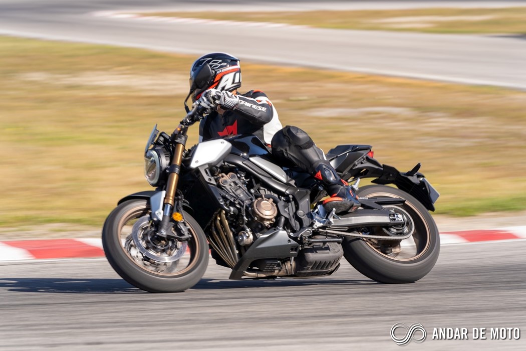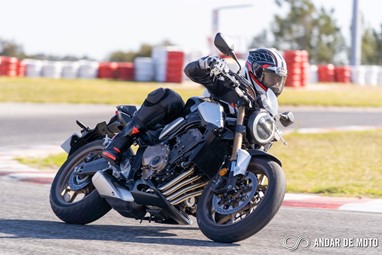 A CBR650R com pneus Dunlop Sportmax D214 mostrou-se mais agressiva no momento de atacar as curvas, oferecendo também mais estabilidade em inclinação. Estes pneus Dunlop obrigam no entanto a ter atenção à temperatura da borracha, e mesmo após alguns minutos a curvar, senti o pneu traseiro escorregar ligeiramente, altura em que o controlo de tração fez sentir a sua presença através de uma luz a pisca no painel de instrumentos.