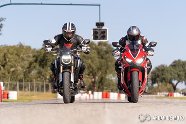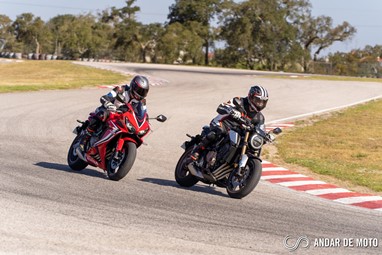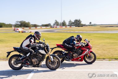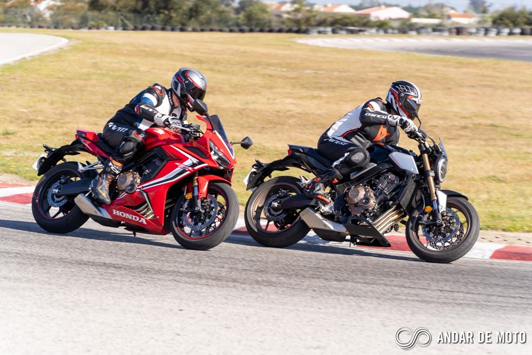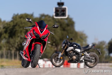 Já em andamento, não é necessário muito tempo para nos sentirmos totalmente à vontade. O motor é dócil, talvez demasiado dócil abaixo das 4000 rpm. Claro que numa condução urbana isso é uma vantagem e permite consumos na ordem dos 4,5 litros de média, mas se quisermos adotar um ritmo mais vivo, tanto a CB como a CBR650R vão sofrer um pouco. Temos então de trabalhar com a caixa de velocidades para não deixar cair as rotações abaixo desse limite, e felizmente a caixa de velocidades é extremamente suave de acionar, e as 6 relações de caixa engrenam com precisão milimétrica. No kartódromo, mesmo nas reduções mais brutas, a embraiagem deslizante mostrou sempre conseguir digerir bem os abusos. Perfeita!Mas a grande mais-valia destas CB650R e CBR650R é a forma como se deixam explorar. Com o motor tetracilíndrico a ganhar força de forma muito linear, as CB650R e CBR650R são ágeis, com a direção a ser um pouco mais precisa na desportiva em comparação com a naked. Estas Honda deixam-se levar de curva para curva com extrema facilidade, e a confiança aumenta até ao ponto em que as suspensões começam a avisar que estamos a chegar ao limite.