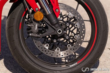 São motos muito comunicativas, uma surpresa para o que estamos habituados no segmento, com a forquilha frontal a dar um bom “feedback” permitindo levar a travagem ao limite antes do ABS entrar em funcionamento, travagem que não impressiona pela potência, mas sim pela eficácia mesmo após longos períodos em que puxamos pelos travões de disco ao máximo sem sentir a manete a ficar esponjosa.