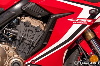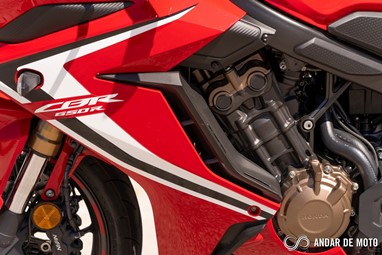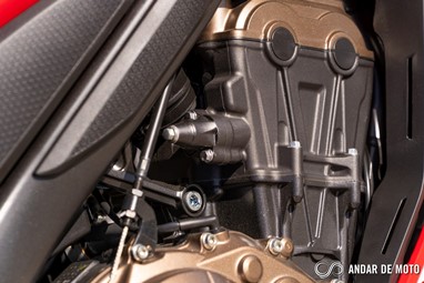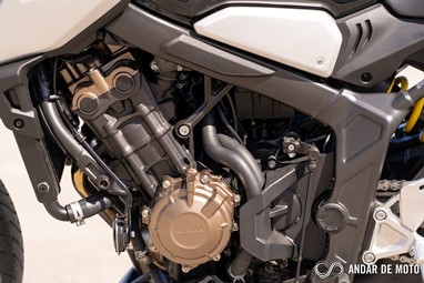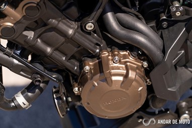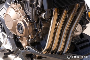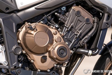 O motor tetracilindrico em linha que equipa as duas novidades Honda para este ano é, basicamente, uma versão espigada do motor que já conhecíamos das anteriores CB650F e CBR650F. A abertura das válvulas foi revista, a admissão e escape foram afinados, enquanto a ECU conta com novo mapa de injeção. O resultado é um motor pontudo, ou seja, para explorar-mos aquilo que ele tem de melhor temos de elevar as rotações bem lá para cima.Entre as 8000 rpm e o “red line” pouco acima das 12.000 rpm é onde encontramos a grande diferença para a geração anterior, sente-se mais cheio, com mais pulmão para responder aos impulsos no acelerador de forma mais imediata, acelerador que, convém destacar, está perfeitamente afinado para uma condução urbana. Os 95 cv são atingidos precisamente às 12.000 rpm, enquanto o binário máximo de 64 Nm revela-se às 8500 rpm. Não só a Honda aumentou a potência em cerca de 5 cv, como também elevou as rotações a que a potência e binário são disponibilizados.