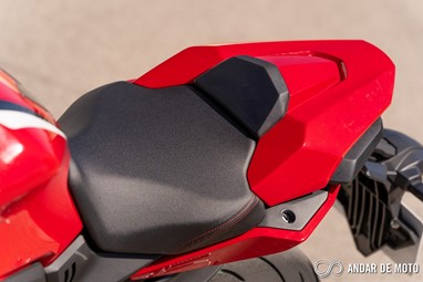 O que também melhorou significativamente em relação à geração anterior das F’s foi o fim das vibrações irritantes entre as 5000 e 6000 rpm! Era uma das queixas que eu tinha nas CB650F e CBR650F. Agora não há vibrações, o que me surpreendeu pela positiva tendo em conta o motor tetracilíndrico tão rotativo, e isso deve-se ao facto da Honda ter optado por utilizar novo apoio superior do motor em vez de aparafusar o motor diretamente ao quadro. Uma solução simples, e que ao mesmo tempo melhorou imenso o conforto de condução.A qualidade de construção também aumentou. Tendo em conta que a CB650R custa 7990€ e a CBR650R custa 8950€, a qualidade dos plásticos é muito acima da média para motos nesta gama de preços. Os acabamentos, em particular na desportiva, mostram que existe um cuidado maior na montagem das carenagens, com as laterais a ficarem perfeitamente enciaxadas no fronal, sem grandes folgas.